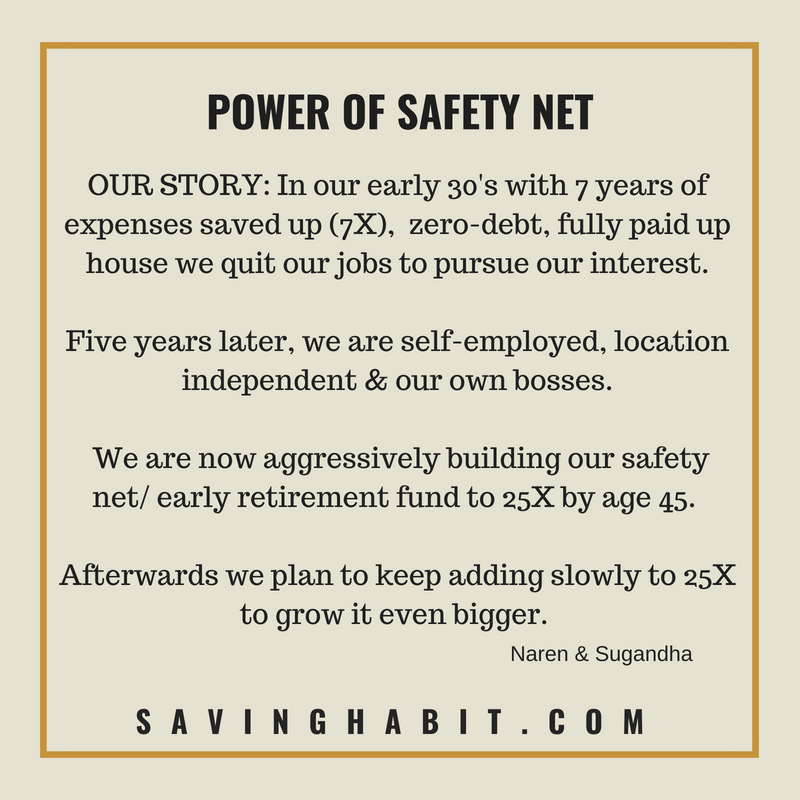 So yes! we recommend 25X corpus as the Early Retirement Target. but not to live off of it for the rest of your life. but to use it as a safety net for a few years when you make the leap into the unknown.